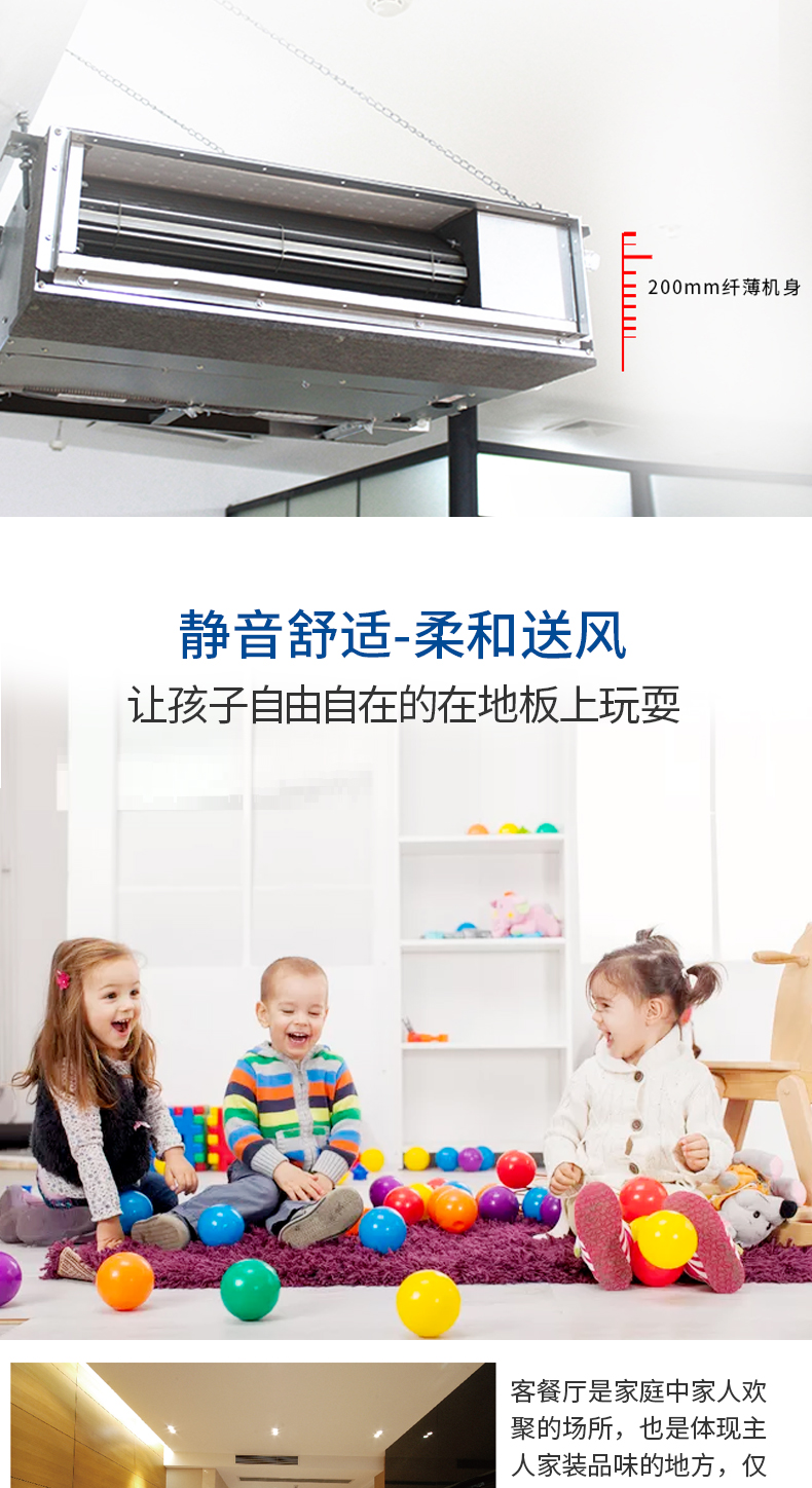 ● 客廳餐廳分別送風(fēng),氣流更均勻 ● 隱蔽式安裝,與客餐廳裝潢風(fēng)格融合 ">