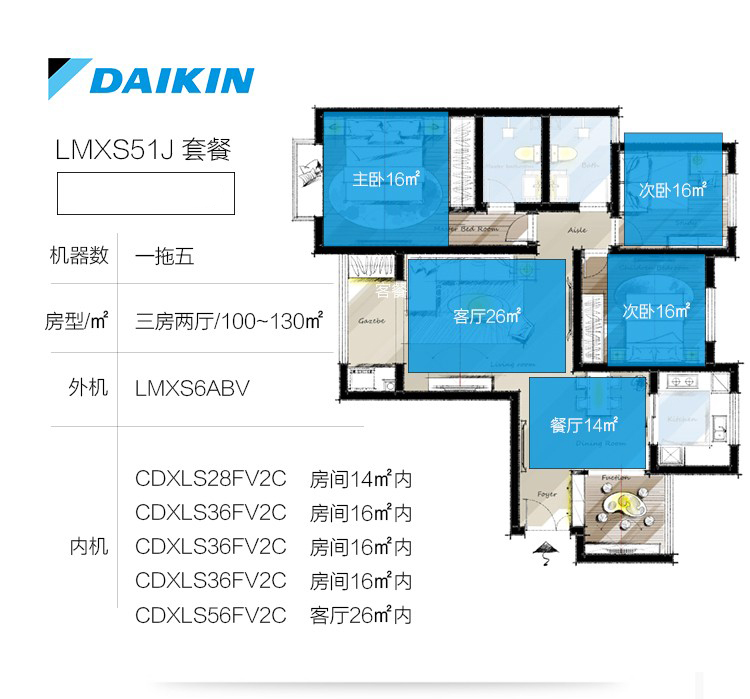 ●4種基礎套餐,靈活對應三房兩廳的空調需求